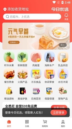 3、品类全:商品范围涵盖生鲜、蔬果、饮品、休闲零食等多个门类,支持日常一站式采购。
