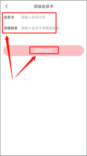 4、在添加页面输入会员卡号与关联姓名,最后点击“添加并绑定”即可完成操作。