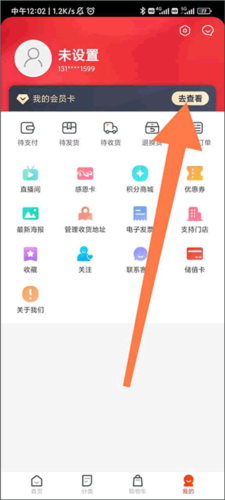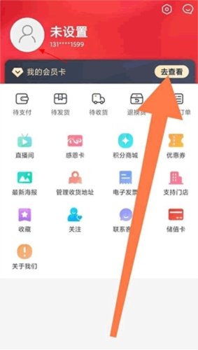 2、在个人中心页面找到并点击“我的会员卡”选项;