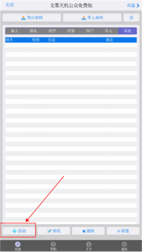 新用户初次使用文墨天机应用时,常会按照以往其他应用的操作习惯,先进入“命例”页面点击“添加”按钮。这种方式虽能完成排盘,但步骤稍显繁琐,需要来回切换界面。实际上,存在更简便的操作方法。
