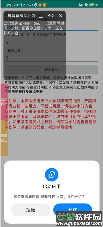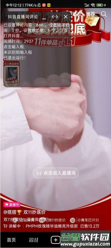 3、进入目标抖音直播间,在软件内设置好相关运行参数。