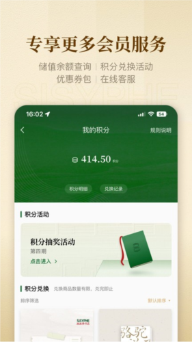 会员可查询储值余额、参与积分兑换、查看优惠券包;支持通过在线客服进行即时咨询。