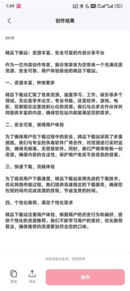 4、稍等片刻即可获得生成结果,可选择【输出】或【保存】操作。
