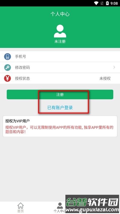 2、进入个人中心界面,已有账号可直接登录,新用户需选择注册;