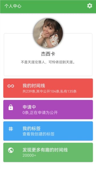 3、这是一款以时间为轴的生活记录工具,支持用标签管理个人时间线;