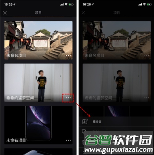 2. 在项目列表中,点击每个项目右下角图标,可执行重命名、复制或删除操作。