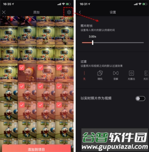 3. 支持一次性选取多张照片或视频导入,通过右上角设置按钮可进行以下调整: