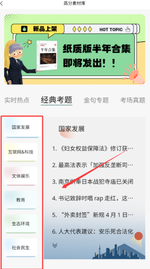 2、多维素材整合:将热点事件按主题进行分类整理,结合关键词提取、思考维度、经典语句及媒体评论,形成系统化的学习资料库。