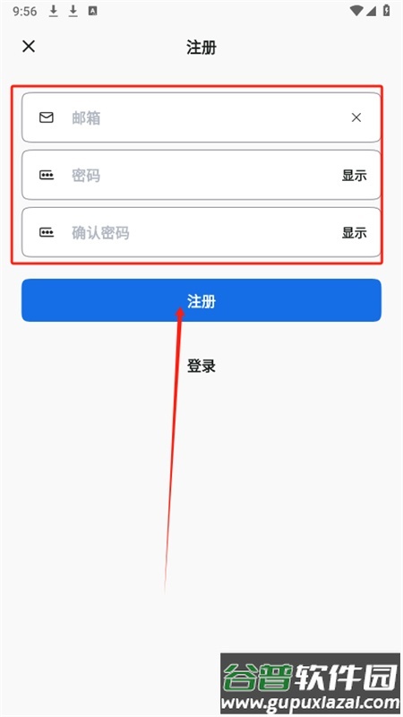2、输入邮箱地址,设置登录密码,点击注册按钮完成流程。