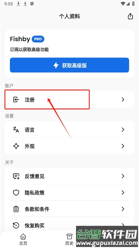 1、下载并安装软件后打开,在个人资料页面找到注册入口并点击;