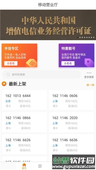 3、若无选号需求,可点击底部办理栏目进入话费充值页面。