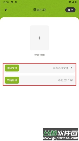 2、选择本地文件,输入书籍名称,保存后即可将小说添加到应用中。
