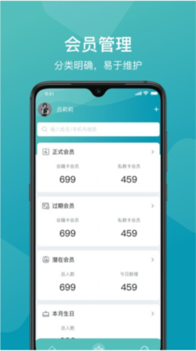 该应用提供门店日程与私教预约功能,支持实时业绩数据统计;会员管理分类清晰,便于维护,个人中心信息管理便捷,一年四季管理端app为健身房运营提供全面支持,推动团队高效协作,实现移动化办公管理。