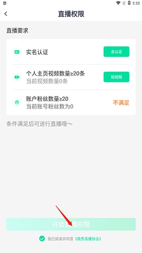 2. 满足平台规定的直播条件后,点击“开始直播权限”即可进行直播。