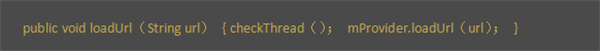 该构造函数会调用ensureProviderCreated()成员函数,以确保Chromium动态库已被加载;在库已加载的情况下,此函数还会创建一个WebViewProvider对象并将其保存在成员变量mProvider中,这个WebViewProvider才是实现WebView各项功能的核心组件;例如loadUrl(String url)等主要方法,基本都是通过mProvider来完成的。