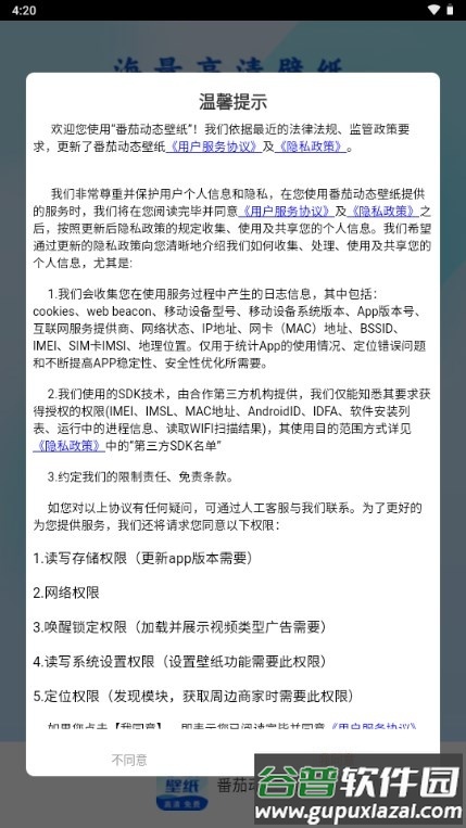 2、打开软件后,首先阅读并同意相关用户协议;