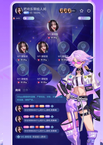 1、丰富房间选择:平台拥有大量主题聊天房间,适应各类用户的社交偏好,支持自由连麦互动;