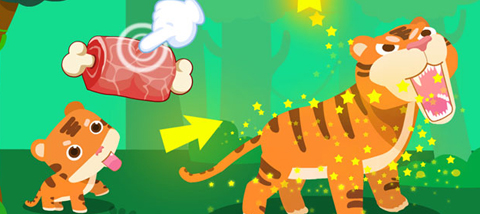 可爱的动物幼崽正等待你来照顾长大。它们喜欢什么食物呢?是新鲜的草捆、美味的肉块,还是可口的牛奶?请为动物宝宝挑选合适的食物吧;通过喂养体验动物成长的乐趣,让孩子在互动中一同成长。