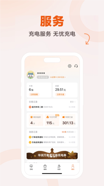 3、在服务页选择活动、商城、充值、搜索或建桩功能;