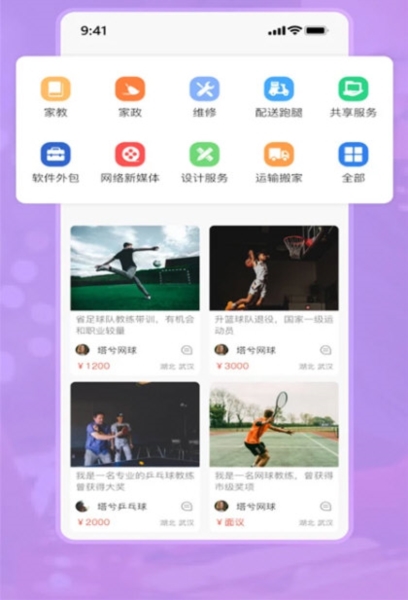 4、进入服务板块可查看各类服务或发布自身技能;