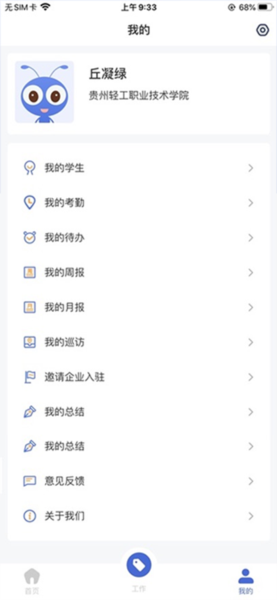 1、打开黔职通APP找到个人信息栏目。