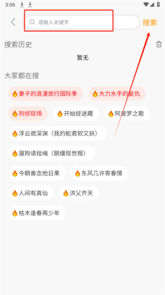 1、打开应用后,在搜索框输入关键词查找想看的资源;