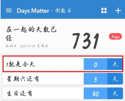 3、设置完成后,应用会自动显示距离下次生日的倒数天数。