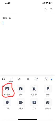 2. 在弹出的插入选项中,选择“相机图片”,然后从相册里选取要添加的图片。