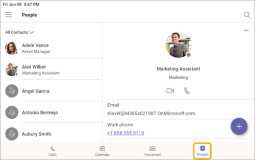 进入“呼叫”界面查看“收藏夹”,其中可能包含快速拨号联系人、您的代理人或从桌面Teams添加的人员。