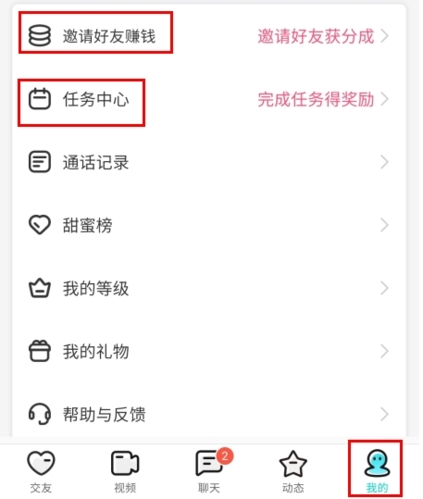 1、在我的页面中找到邀请好友赚钱和任务中心入口;