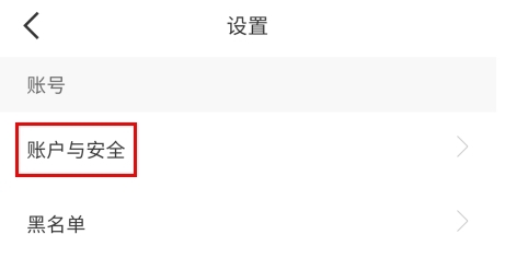 2、在设置页面选择账户与安全选项;