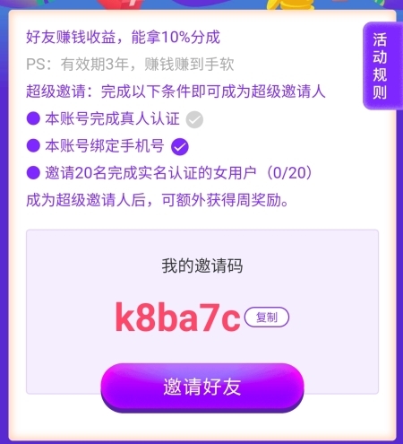 2、在邀请好友界面,成功邀请新用户即可领取额外奖励;