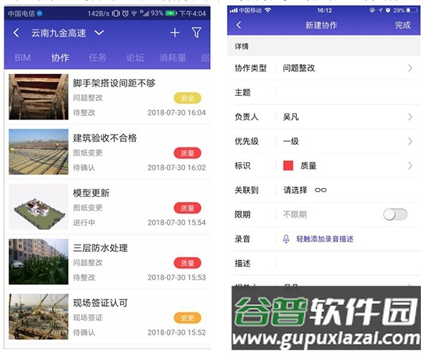 应用支持按项目需求发起安全、质量、进度等类型的协作任务,可关联模型位置与具体构件,并附上相关文档说明。利用手机便捷性,对问题位置拍照上传,指定相关负责人,快速启动任务协作流程;全程跟踪问题处理状态,保留过程记录,强化问题溯源与监控;借助BIM技术对问题构件快速定位,发挥安全质量管理的实际价值。
