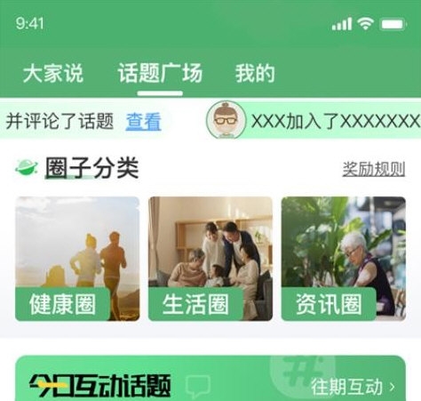 依据话题差异将圈子分为多个类别,用户可自由选择加入。
