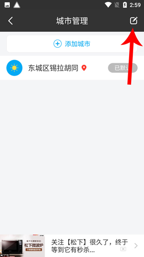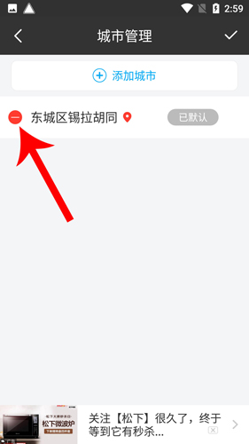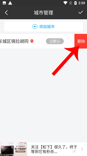 对于不再需要关注的城市,用户可将其从列表中移除,操作流程如下。