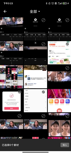 随后软件会访问本地相册,列出可用的视频文件;从中选取预先制作好的片头视频,点击添加,该片头便会自动插入到主视频之前。