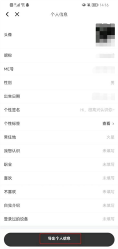 最后点击页面底部的【导出个人信息】按钮,即可完成操作。