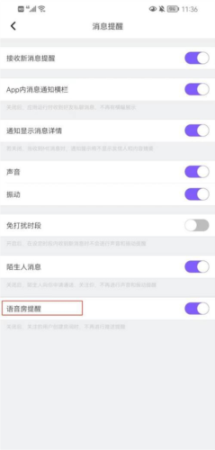 最后找到【语音房提醒】选项,将其开关打开即可。