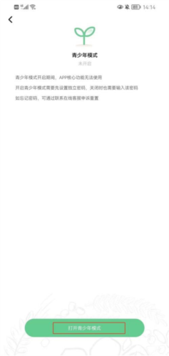 最后点击【打开青少年模式】选项,即可成功启用该模式。