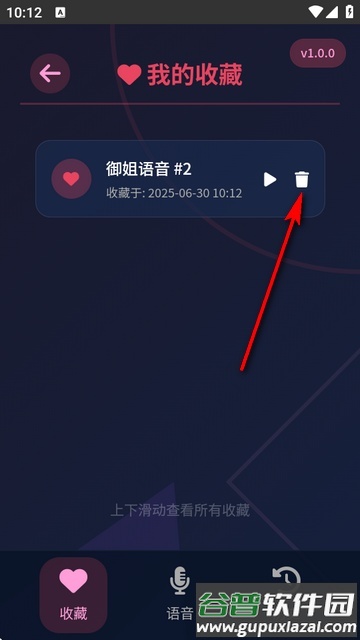 3、遇到喜欢的语音,点击爱心图标即可收藏,在收藏页面集中查看;需要删除时,点击垃圾桶按钮便可快速移除。