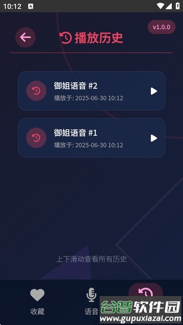 2、点击历史页面,可以按照时间顺序查看已经播放过的御姐语音记录。
