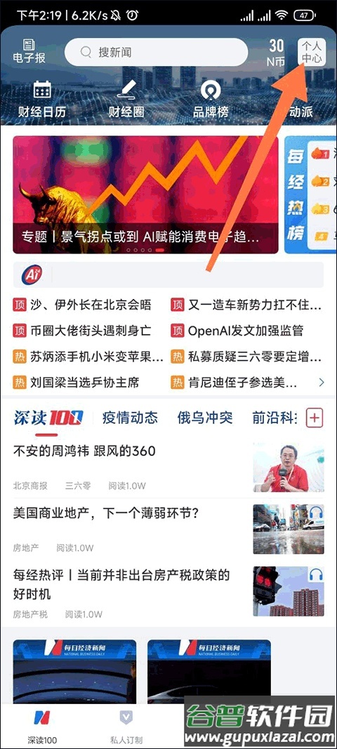 1、打开每日经济新闻应用,点击首页左上角个人中心入口。