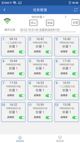 4、喂食时间自定义:允许用户自定义喂食时间点,最多可设置12个定时任务,实现全天候自动化精准饲喂。