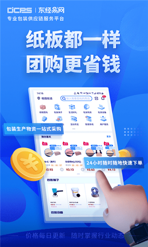 东经易网是浙江东经科技打造的一款专注于包装纸板交易的B2B电商应用。平台直接连接货源厂家,提供外贸纸箱、包装辅料等品类,确保商品质量可靠且价格具有竞争力。用户可通过参与丰富的团购与秒杀活动,以更优成本完成采购。平台集成智能物流系统,保障订单快速配送,致力于让包装采购流程更高效便捷。