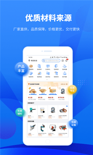 品类齐全:涵盖纸板专区、包装辅料、包装设备等全部分类,满足各类采购需求;