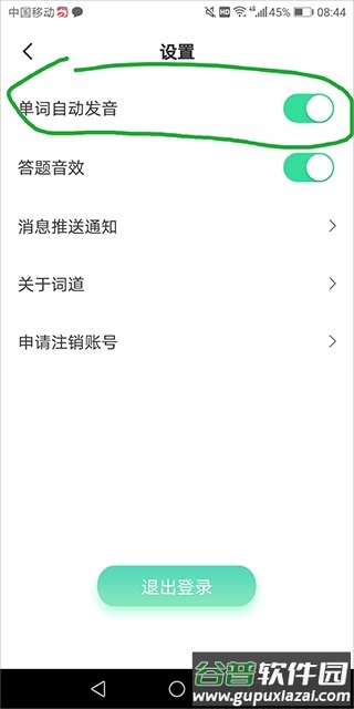 2、于设置页面中,找到单词自动发音功能,将其开启即可。