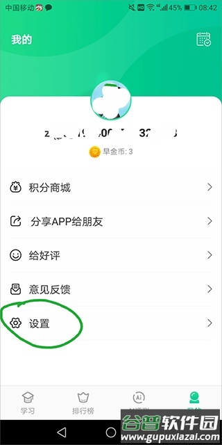 1、在词道应用内,进入“我的”界面,找到设置选项;