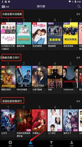 3、排行板块提供日剧迷、韩剧流量、大陆剧等多类影视排行榜单;