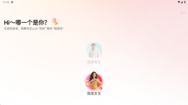 2、首先选择性别,在聊天时可将对方发送的内容复制,并粘贴至app的输入框内。