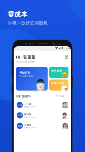 3、设有专门的签到提示,引导学员完成刷脸流程,帮助其快速熟悉操作;